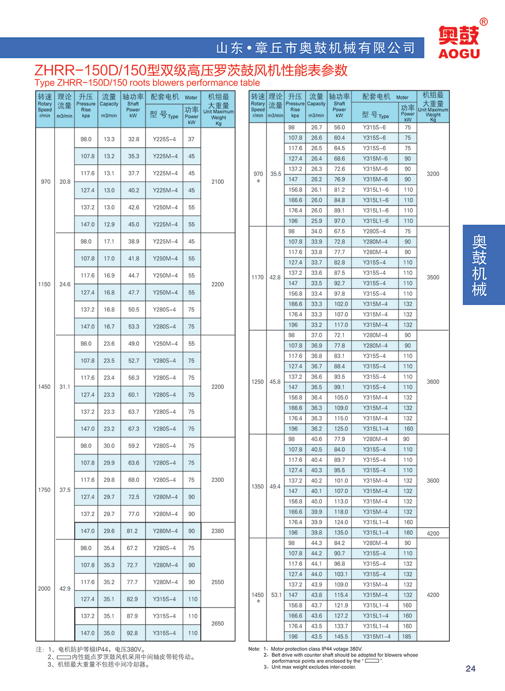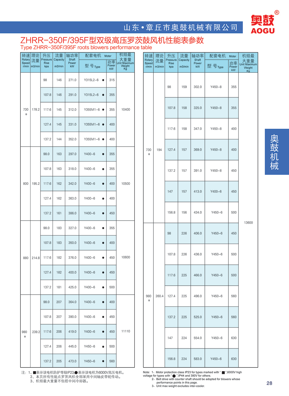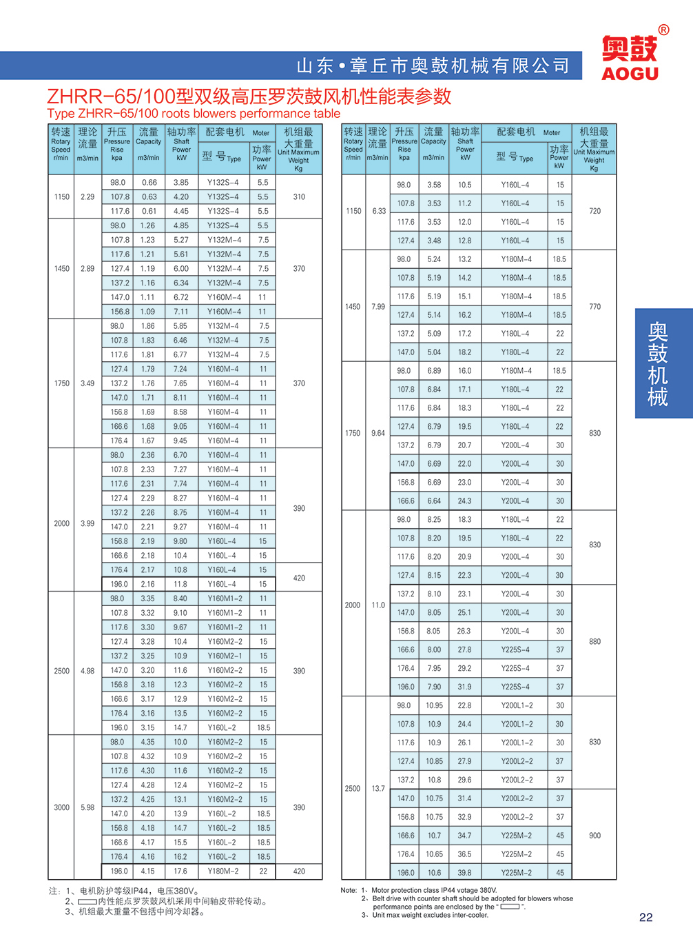 奧鼓三葉羅茨鼓風(fēng)機(jī)與二葉羅茨鼓風(fēng)機(jī)字面上比較,多了一個(gè)葉,將二葉型變?yōu)槿~型,從而將有效容積從兩等分變?yōu)槿确?減少了輸出氣流壓力的脈動(dòng),而且排氣腔部分體積通過(guò)葉輪間隙回流到進(jìn)氣腔的氣體流量減少,氣體的擾動(dòng)減小,氣體的脈動(dòng)壓力減小,從而使羅茨鼓風(fēng)機(jī)的振動(dòng)減少.兩者之間還有以下的區(qū)別: